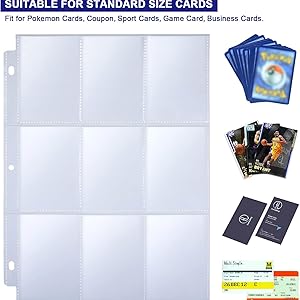 The Pocket Page Protector Holds standard sized cards with 2-1/2" X 3-1/2" dimensions or smaller, Card Protector Sleeves can be used for game cards (for yugioh cards / Animal Crossing amiibo cards), calibration receipts, trading cards, business cards, sport cards (baseball cards / football cards), credit cards and more.