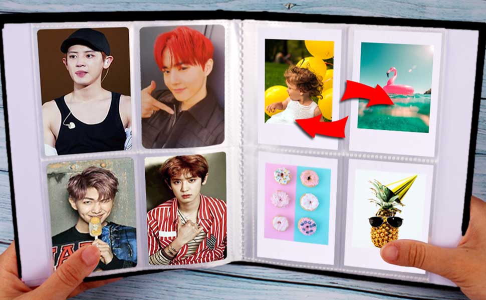 We only use acid-free, PVC free archival safe quality sleeves for all of our mini photo album book. Perfect to store whatever you want to see both sides of the item within, such as K-pop photo cards, artwork, compatible with polaroid instax mini pictures and more to assure every of your precious memory, drawings and collections safe, and store longer.