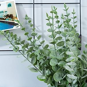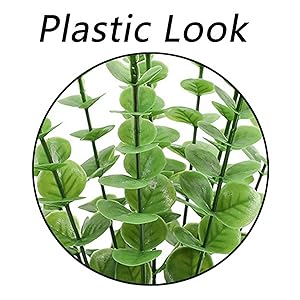 The product is made of plastic and iron,the leaf looks NOT as real as alive Eucalyptus But we have tried everything we can do to make it look more real.