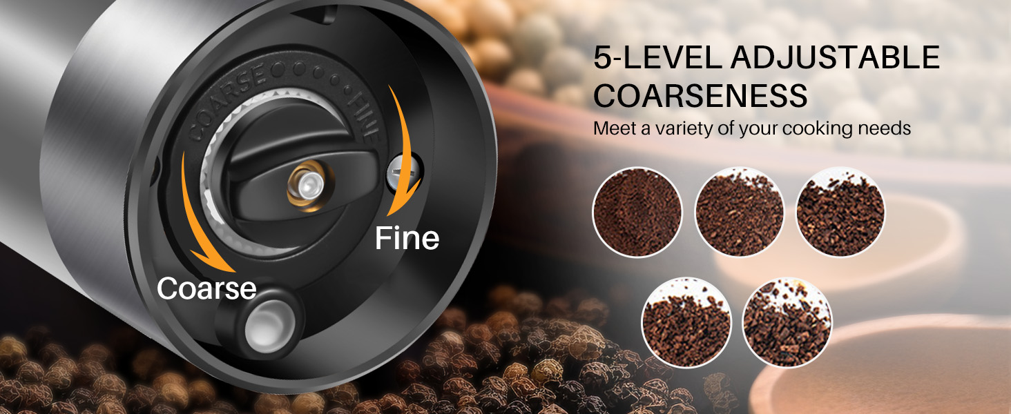 Salt and Pepper Grinder Set- Instant powder release with just one click, no need for advance grinding, no moisture or mold.