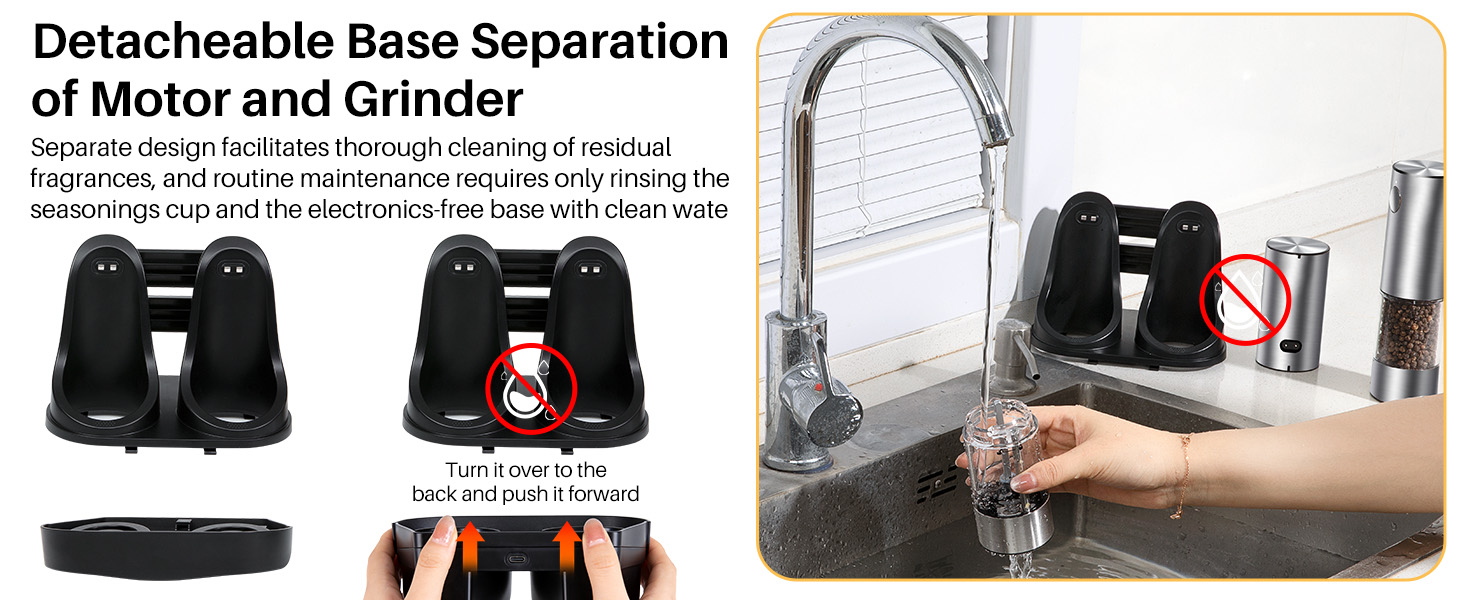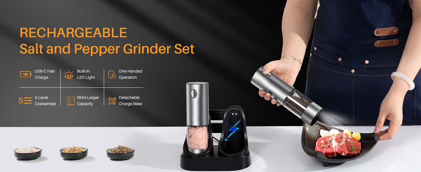 The rechargeable salt and pepper grinder is suitable for any room in your home, such as the kitchen, dining room or outdoor cooking.