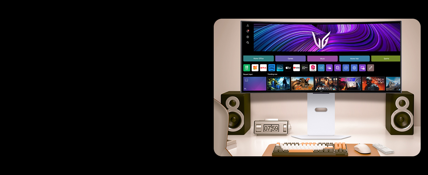 The 34” WQHD OLED with a steep 800R curve and 1300-nit peak brightness pulls you deep into the action, while a 240Hz refresh rate and 0.03ms response time keep gameplay insanely fast and smooth. Plus, LG’s webOS lets you stream your favorites and cloud game—all from one epic screen.